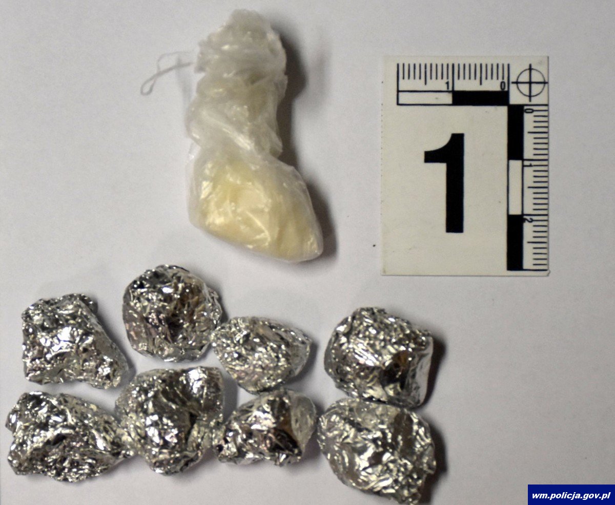 Policjanci z Wydziału Kryminalnego piskiej policji na ulicach miasta zauważyli młodego mężczyznę, którego podejrzewali o posiadanie narkotyków. Był to 20-letni mieszkaniec Pisza. W kieszeniach jego spodni funkcjonariusze znaleźli osiem zawiniątek z folii aluminiowej i torebkę foliową z zawartością białego proszku. Mieszkaniec Pisza powiedział, że jest to amfetamina, co potwierdziło wstępne badanie testerem. Mężczyzna dodał, że narkotyki należą do niego. Kryminalni zabezpieczyli łącznie blisko 90 porcji dilerskich amfetaminy.