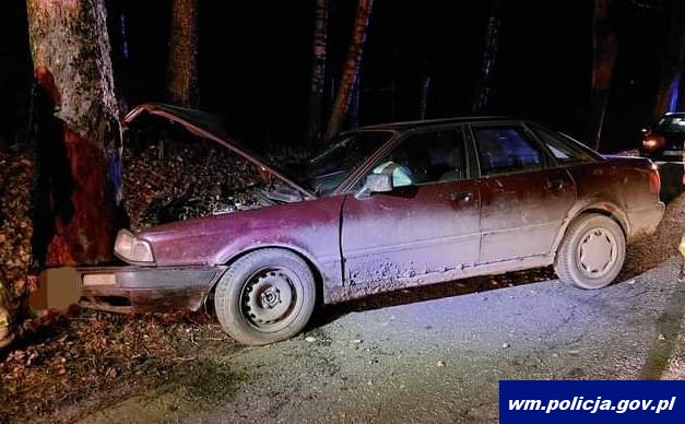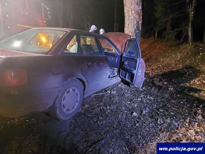 Tego samego dnia (07.03.2022r.) o godz. 18:30 oficer dyżurny kętrzyńskich policjantów otrzymał pilną interwencję związaną ze zdarzeniem drogowym. Z przekazanych informacji wynikało, że za miejscowością Wola w gm. Reszel auto uderzyło w przydrożne drzewo. Na miejsce zdarzenia zostali skierowani policjanci oraz inne służby ratownicze. Funkcjonariusze zabezpieczyli miejsce wypadku, przeprowadzili oględziny, sporządzili dokumentację fotograficzną oraz przeprowadzili badanie stanu trzeźwości kierowcy.
