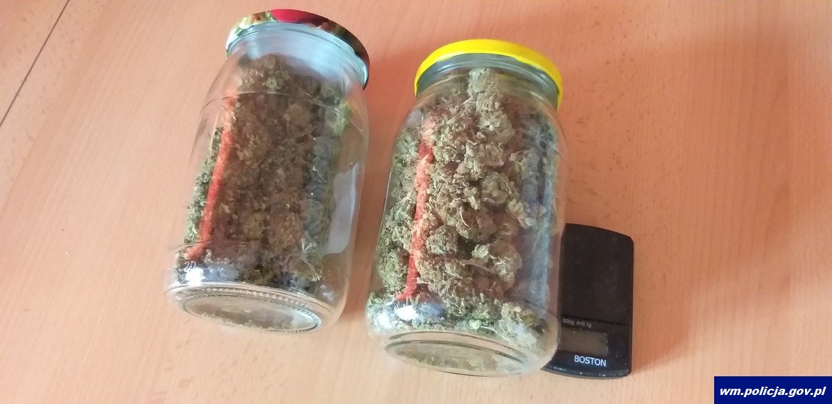 Dwa litrowe słoiki z roślinnym suszem zabezpieczyli policjanci kryminalni w mieszkaniu pewnego 31-latka. Po sprawdzeniu narkotykowym testerem okazało się, że jest to marihuana. Mężczyzna został zatrzymany w policyjnym areszcie. Sytuacja miała miejsce w czwartek 21.04.2022 r.. Tam policjanci kryminalni podczas przeszukania mieszkania 31-letniego mężczyzny znaleźli dwa słoiki z roślinnym suszem. Znajdowały się one w szafce kuchennej pod zlewem. Po sprawdzeniu zawartości narkotykowym testerem okazało się że jest to marihuana. Dodatkowo obok słoik stała elektroniczna waga, którą również zabezpieczyli policjanci. Teraz zatrzymany 31-latek odpowie przed sądem. Może mu grozić kara do 10 lat pozbawienia wolności.