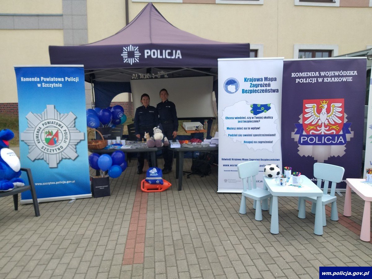 Po uroczystościach na placu apelowy rozpoczął się Piknik Rodzinny, podczas którego organizatorzy przygotowali mnóstwo atrakcji m.in. pokazy pojazdów oraz sprzętu wojskowego, policyjnego i strażackiego. Nie zabrakło również miłych akcentów, które skierowane były do najmłodszych uczestników pikniku. Stoisko Komendy Powiatowej Policji w Szczytnie zorganizowane wspólnie z Komendą Wojewódzką Policji w Olsztynie było chętnie odwiedzane przez zwiedzających a szczególnie przez dzieci. To dla nich przygotowane zostało wiele atrakcji. Podczas wspólnej zabawy dzieci chętnie brały udział w konkursach i zabawach, za które zostały nagrodzone drobnymi upominkami. Ci najmłodsi mogli sprawdzić swoją wiedzę na temat bezpieczeństwa w ruchu drogowym i na wodzie, wykonać odciski swoich linii papilarnych. Z rąk policjantów z ruchu drogowego Komendy Wojewódzkiej Policji i szczycieńskich policjantów otrzymały gadżety o tematyce szeroko rozumianego bezpieczeństwa. Pieszym wręczane były elementy odblaskowe oraz ulotki zawierające podstawowe zasady ruchu drogowego i bezpiecznego przebywania na wodzie. Dużym zainteresowaniem cieszył się motocykl policyjny oraz łódź motorowa, przy których dzieci i młodzież, a także dorośli chętnie się fotografowali.