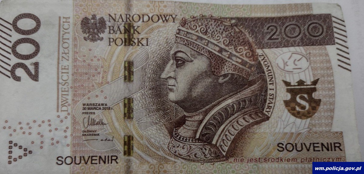 Do Sądu Rejonowego w Olsztynie wpłynął akt oskarżenia przeciwko 22-latkowi, który jest podejrzany o usiłowanie oraz dokonanie oszustwa. Z policyjnych ustaleń wynika, że mężczyzna w październiku 2021 roku w jednym ze sklepów na terenie miasta próbował zapłacić za zakupy banknotem o nominale 200 złotych z napisem „souvenir”. Kasjerka w porę zorientowała się, że ma do czynienia z oszustem i powiadomiła służby. Interweniujący policjanci zabezpieczyli przekazany banknot.