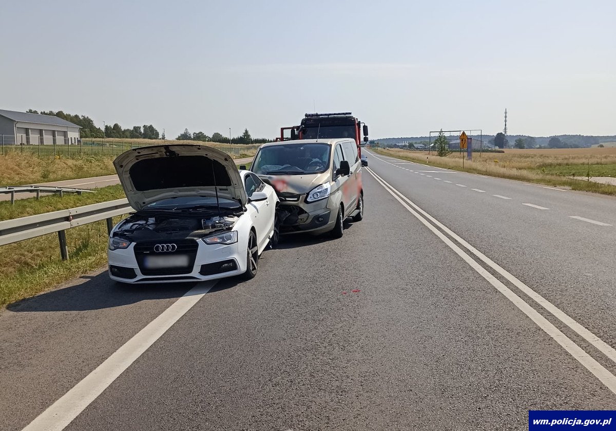 Tego samego dnia (23.07.2022r.) na drodze krajowej numer 16 przed miejscowością Sorkwity w zdarzeniu drogowym uczestniczyły trzy pojazdy - Skoda, Audi oraz Toyota. Jak ustalili policjanci pracujący na miejscu, 27-latka kierując Skodą nie zachowała należytej ostrożności i odstępu od poprzedzającego pojazdu. Jej samochód uderzył w jadące przed nią osobowe Audi kierowane przez 29-latka, a ten pchnięty najechał na znajdującą się przed nim Toyotę. Tym autem kierował 32 -latek mieszkaniec Torunia. Uczestnicy zdarzenia nie odnieśli żadnych poważniejszych obrażeń. Jak potwierdzono, wszyscy byli trzeźwi. 27-latka została ukarana mandatem karnym za spowodowania zagrożenia bezpieczeństwa w ruchu drogowym.
