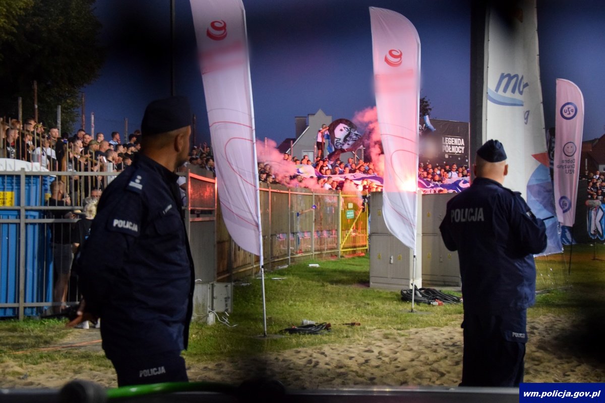 W środę (10.08.2022) policjanci z Elbląga zabezpieczali mecz pomiędzy Olimpią – Elbląg, a Stomilem Olsztyn. Elbląskich funkcjonariuszy wspierali policjanci z Olsztyna, Gdańska oraz z powiatów garnizonu warmińsko-mazurskiego. Mecz był imprezą masową o podwyższonym ryzyku. W jej zabezpieczenie zaangażowanych było kilkuset funkcjonariuszy z oddziałów prewencji, jak również kryminalnych, którzy zadbali o to, aby nie doszło do zakłócenia porządku przed meczem, w trakcie jego trwania oraz po samym widowisku. W imprezie wzięło udział blisko 3 tysiące kibiców. Kibice przyjezdni bezpiecznie powrócili do swoich domów. Nikt nie odniósł obrażeń, nikogo nie zatrzymano.