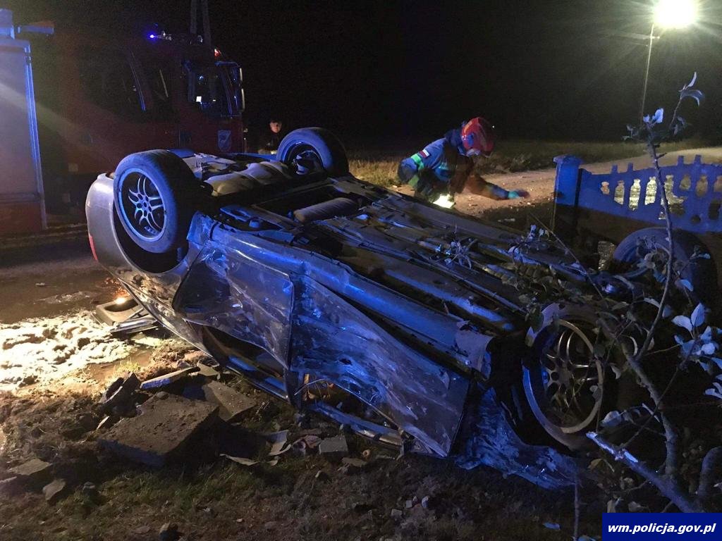 W niedzielę (04.09.2022r.) przed godziną 02:00 do dyżurnego szczycieńskiej jednostki wpłynęło kolejne zgłoszenie dotyczące zdarzenia drogowego w miejscowości Małdaniec. Ze zgłoszenia wynikało, że samochód osobowy marki Audi uderzył w płot i dachował. Funkcjonariusze przybyli na miejsce potwierdzili zgłoszenie. Ustalili, że 26-letni mieszkaniec gminy Szczytno, w wyniku niedostosowania prędkości do warunków panujących na drodze stracił panowanie nad pojazdem, zjechał z drogi, uderzył w ogrodzenie posesji, po czym pojazd wywrócił się na dach. Policjanci zbadali 26-latka alkomatem, okazało się, że wsiadł on za kółko mając ponad promil alkoholu w organizmie. Mężczyzna jechał sam, w wyniku poniesionych obrażeń został przetransportowany do szpitala. Teraz za swoje nieodpowiedzialne zachowanie będzie tłumaczył się przed sądem.