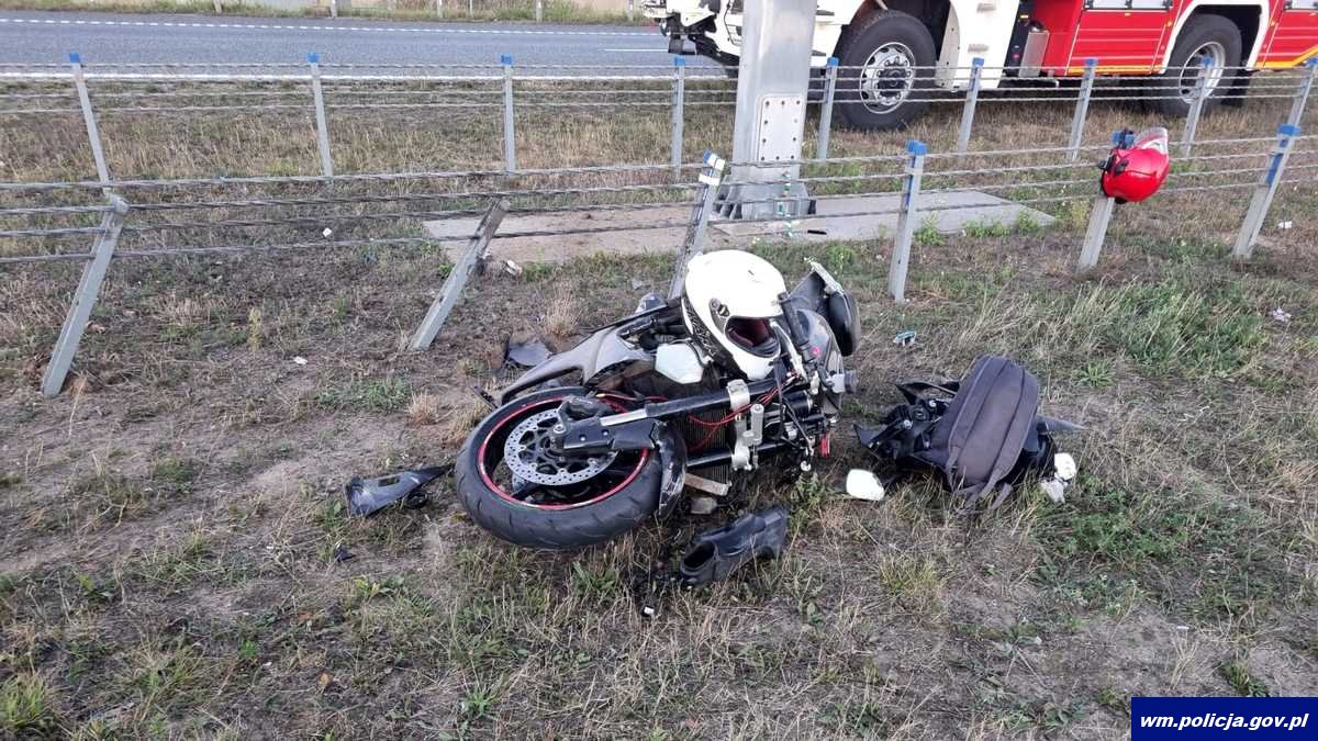 W niedzielę (04.09.2022r.) dyżurny nidzickiej jednostki Policji otrzymał zgłoszenie dotyczące zdarzenia drogowego na drodze ekspresowej S7 koło miejscowości Litwinki. Z ustaleń policjantów zadysponowanych do obsługi zdarzenia wynikało, że 35-letni kierujący motocyklem marki Suzuki na prostym odcinku drogi stracił panowanie nad pojazdem w skutek czego zjechał w lewo na pas zieleni gdzie uderzył w bariery energochłonne. Motocyklista był trzeźwy. Zderzenie skutkowało urazem kręgosłupa i złamaniem oczodołu u motocyklisty. Funkcjonariusze sporządzili wniosek o ukaranie do sądu i zatrzymali dowód rejestracyjny jednośladu.