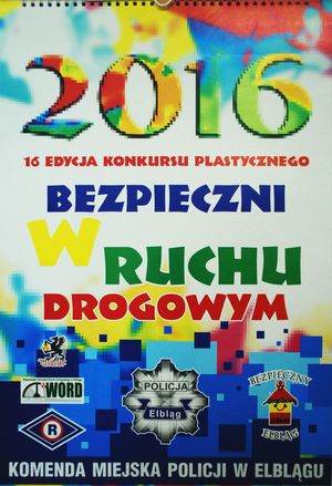 Elbląska Policja po raz 16 wydała kalendarz „Bezpieczni w ruchu drogowym”. Jak co roku, karty poszczególnych miesięcy ozdobiły prace plastyczne dzieci. Najmłodsi rysowali ilustracje dotyczące zachowań na drodze. Prace są bardzo ciekawe i zarazem wymowne. W kalendarzu znalazło się 12 najlepszych prac uczniów z Elbląga i powiatu elbląskiego. Ich publikacja w kalendarzu to jedna z nagród w konkursie „Bezpieczni w ruchu drogowym”.