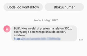 Oszuści ciągle modyfikują swoje metody działania i korzystają z każdej nadarzającej się okazji, aby wprowadzić w błąd i wykorzystać zaufanie niczego niepodejrzewających osób. Coraz chętniej podszywają się pod przedstawicieli systemu płatności mobilnych. Przestępcy wysyłają smsy do swoich ofiar z informacją, że czeka na nich odbiór pieniędzy. Jedyne co należy zrobić, to wejść w wysłany link. Ofiara wchodząc na fałszywą stronę internetową daje możliwość przejęcia swoich danych wrażliwych przez oszustów, a co może wiązać się z utratą oszczędności.