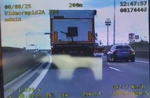 Wysokim mandatem i punktami ukarany został kierowca ciężarówki, który wykonywał manewr wyprzedzania na trasie s7. Policjanci przypominają - na drogach ekspresowych, szybkiego ruchu i autostradach obowiązuje zakaz wyprzedzania dla samochodów ciężarowych o dopuszczalnej masie całkowitej powyżej 3,5 tony.