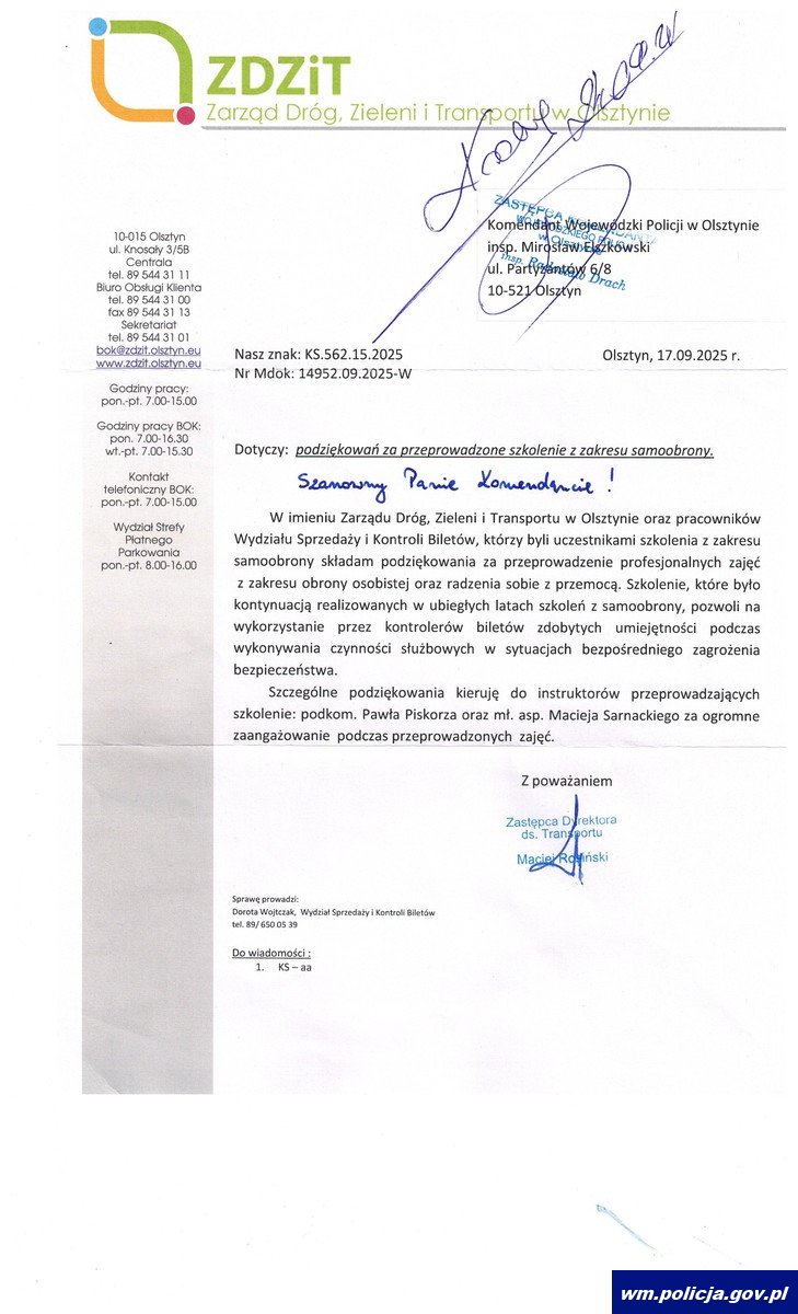 Podziękowanie dla policjantów za przeprowadzenie szkolenia w zakresie samoobrony Powrót Drukuj 17.09.2025
