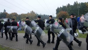 Iława: Policyjne zabezpieczenie meczu Widzew Łódź - GKS Wikielec