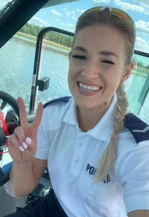 Komendant Powiatowy Policji w Piszu, insp. Marcin Kubas wyróżnił sierż. Pamelę Banach za wzorowe realizowanie zadań służbowych, zwłaszcza jako policyjny wodniak. Służba na wodzie to spełnienie jej marzeń. Będąc już policjantką zdobyła uprawnienia stermotorzysty i ratownika wodnego, z czego jest bardzo dumna, bo jak sama żartobliwie mówi jej imię zobowiązuje. Ty też możesz zostać policjantem i spełniać swoje marzenia.