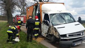 Nidziccy policjanci pracowali na miejscu zdarzenia drogowego, w którym uczestniczył pojazd do przewozu bydła. Kierujący iveco uderzył w drzewo, a z uszkodzonego pojazdu wydostały się cielaki. W zdarzeniu tym ucierpiała jedna osoba, która została przewieziona do szpitala. Sprawca kolizji został ukarany mandatem i punktami karnym.