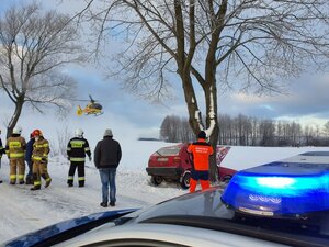 W piątek (12.02.2021r.) rano policjanci pracowali na miejscu groźnego wypadku drogowego, który miał miejsce w Tomaszewie na terenie gminy Kurzętnik. Kierujący volkswagenem uderzył w drzewo. Mężczyzna podróżował sam, z obrażeniami został przetransportowany helikopterem Lotniczego Pogotowia Ratunkowego do szpitala.