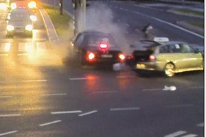 Kierowca rozpędzonego lexusa - z sobie tylko znanych powodów - wjechał na skrzyżowanie na czerwonym świetle. Olbrzymie szczęście miał rowerzysta, który o mały włos nie został przez niego potrącony. Do tragedii doszłoby, gdyby nie taksówka, która wjechała na skrzyżowanie „na zielonym” i zderzyła się z lexusem. W wyniku zderzenie obrażenia odniosła pasażerka lexusa. Jego kierowcy policjanci zatrzymali prawo jazdy.