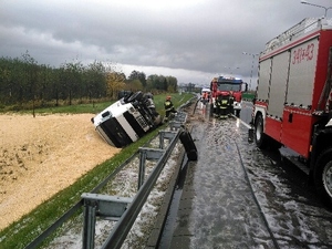 Policjanci z Gołdapi wyjaśniają okoliczności zdarzenia drogowego z udziałem ciężarówki przewożącej zboże. Pojazd wjechał do przydrożnego rowu i tam się wywrócił. Kierowca trafił do szpitala.