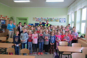 Policjanci ruchu drogowego w ramach akcji „Noś odblaski. Bądź widoczny” odwiedzili uczniów ze Szkoły Podstawowej w Orżynach. Podczas rozmowy z dziećmi z klas I-III funkcjonariusze informowali o zagrożeniach związanych z poruszaniem się po drogach. Przypomnieli również, że każdy pieszy, który będzie poruszał się po zmierzchu po drodze poza obszarem zabudowanym, musi mieć odblask umieszczony w sposób widoczny dla kierujących. Na koniec spotkania każdy uczestnik otrzymał od policjantów odblask.