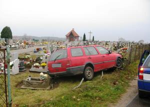 Policjanci zatrzymali mieszkańca gminy Kurzętnik, który mając 3,5 promila alkoholu w organizmie, przebił się swoim vw przez ogrodzenie cmentarza i „zaparkował” pomiędzy pomnikami. 44-latek noc spędził w policyjnym areszcie. Za kierowanie autem w stanie nietrzeźwości grozi mu kara do 2 lat pozbawienia wolności. Mężczyzna odpowie również za spowodowanie kolizji.
