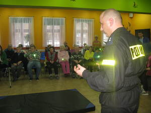 Kontynuując projekt " Kętrzyn przyjazny wiekowi - Bezpieczny senior", funkcjonariusze spotkali się z uczestnikami Środowiskowego Domu Samopomocy w Kętrzynie. Podczas spotkania podopieczni najpierw wysłuchali prelekcji na temat bezpieczeństwa w ruchu drogowym i otrzymali opaski odblaskowe, a następnie brali udział w zajęciach z podstaw samoobrony.